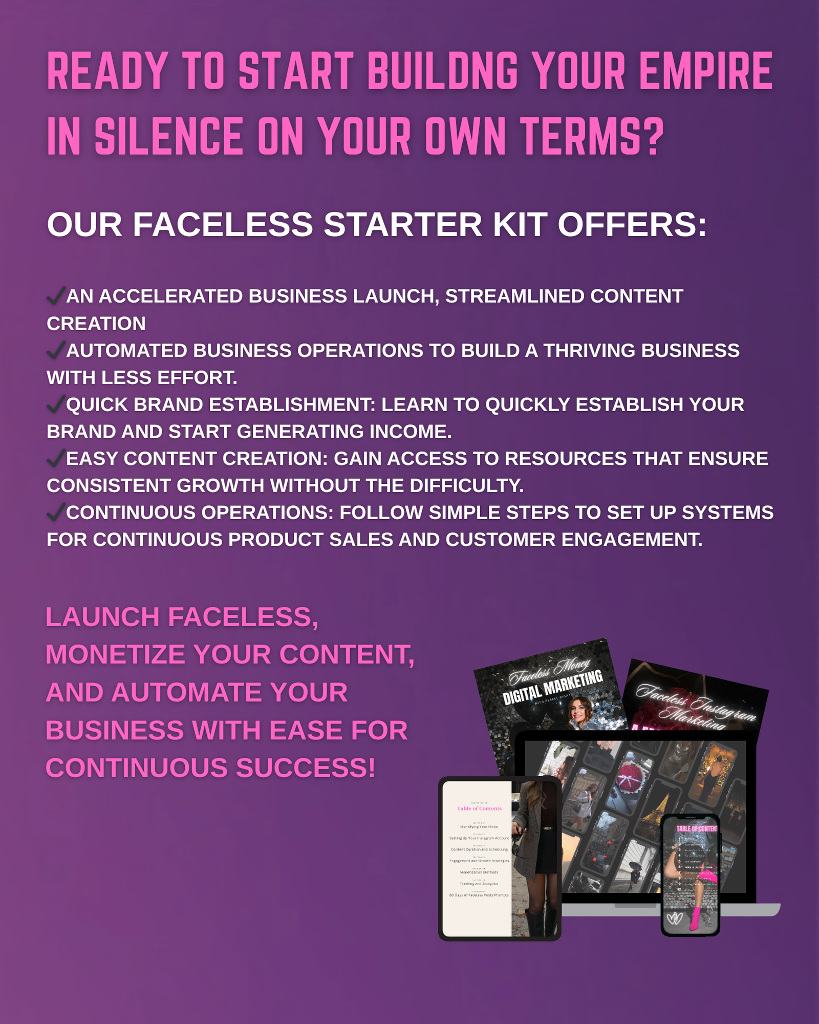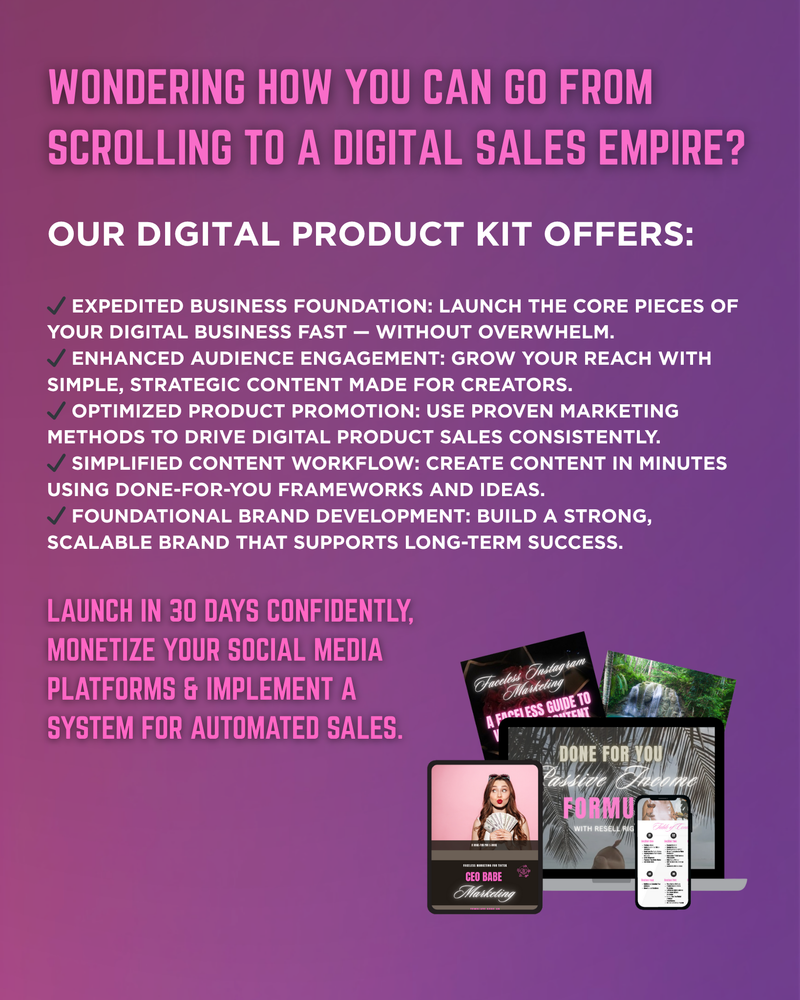 Access our done-for-you digital product starter kits to easily build a profitable faceless brand.